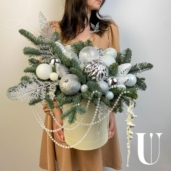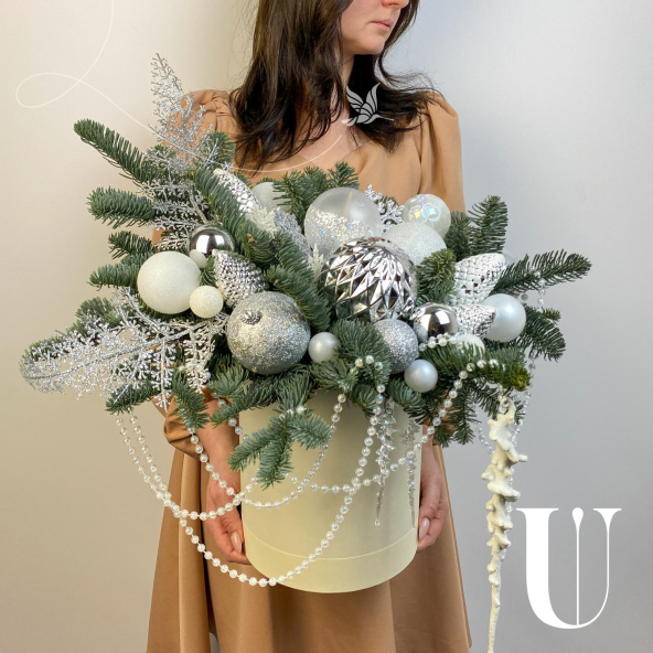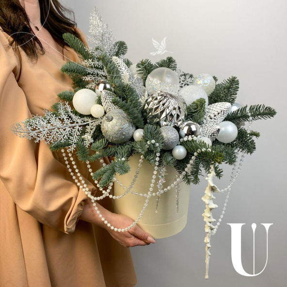 Новогодняя композиция в шляпной коробке! Украсит ваш дом и станет прекрасным подарком вашим близким!