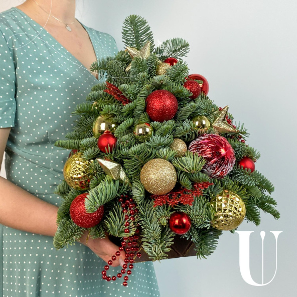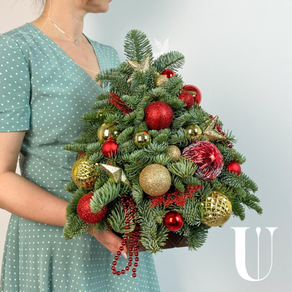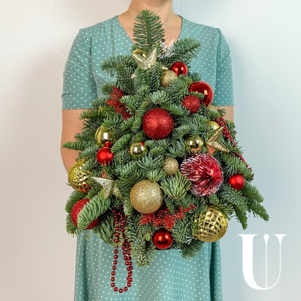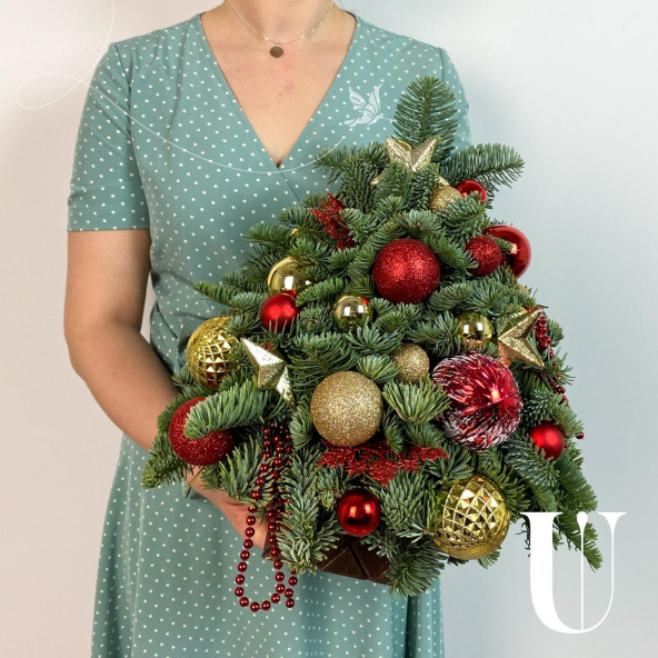 Ёлочка из натурального лапника, собрана по веточке на флористическую губку и украшена, не осыпается