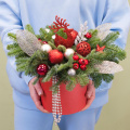 Новогодняя композиция "Красная зимняя" в шляпной коробке - это стильный и оригинальный подарок, который станет прекрасным дополнением к праздничной атмосфере.