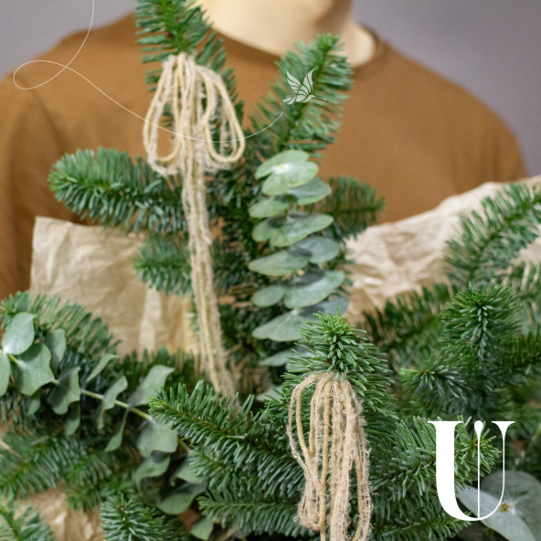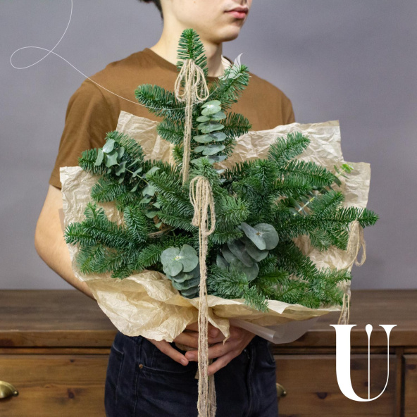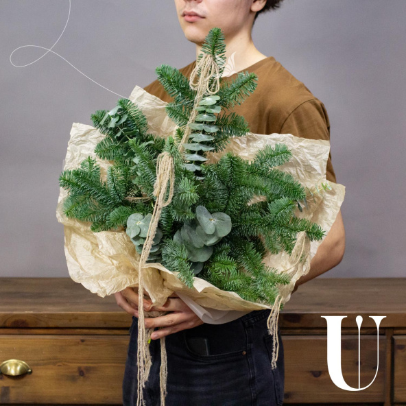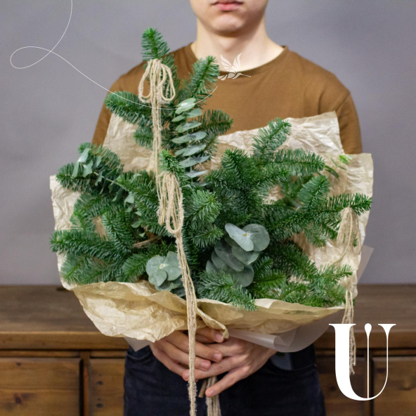 Стильный букет из красных роз Эль Торро и красного гиперикума и корицы