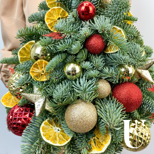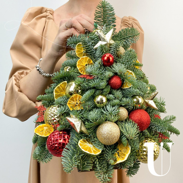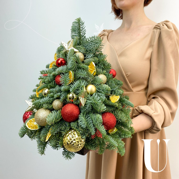 Ёлочка из натурального лапника, собрана по веточке на флористическую губку и украшена, не осыпается