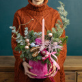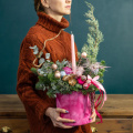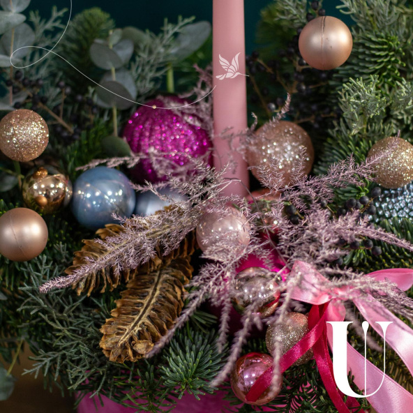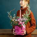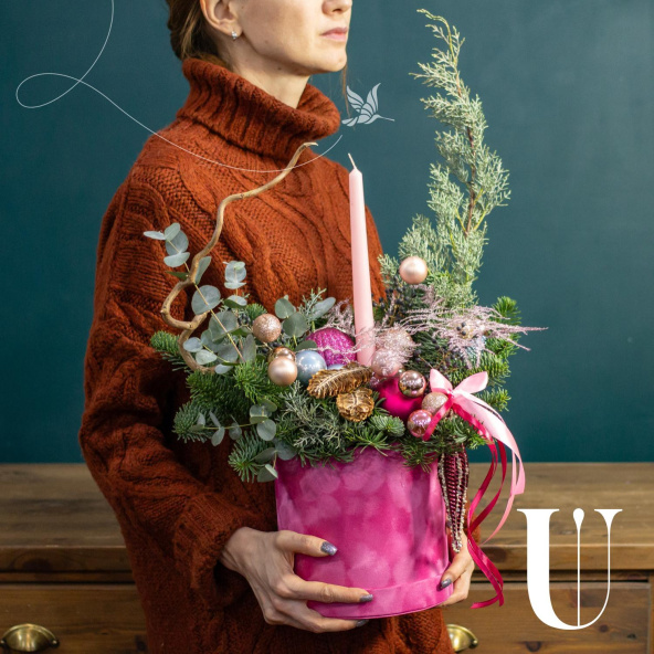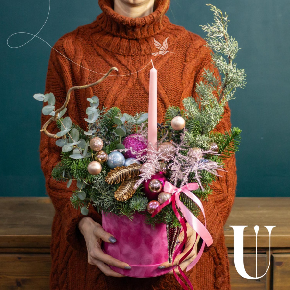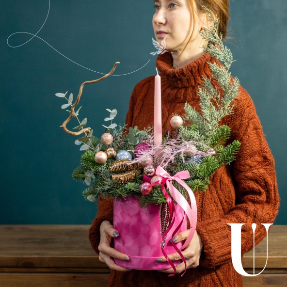 Новогодняя композиция из елового лапника, нобилиса и декора в упаковке