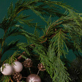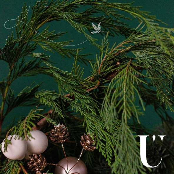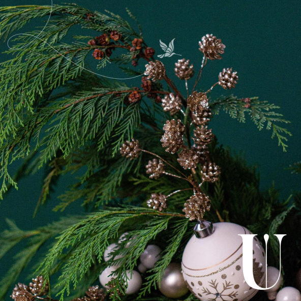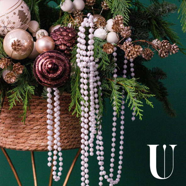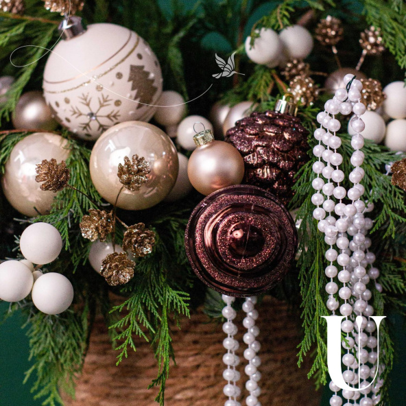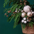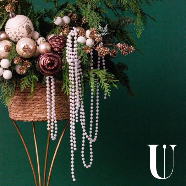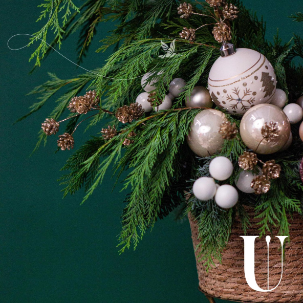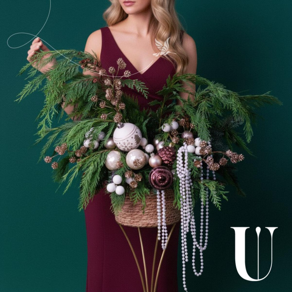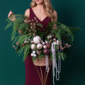 Дизайнерская композиция из нобилиса, заснеженного рускуса и куклы