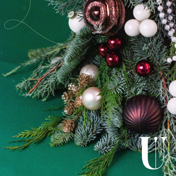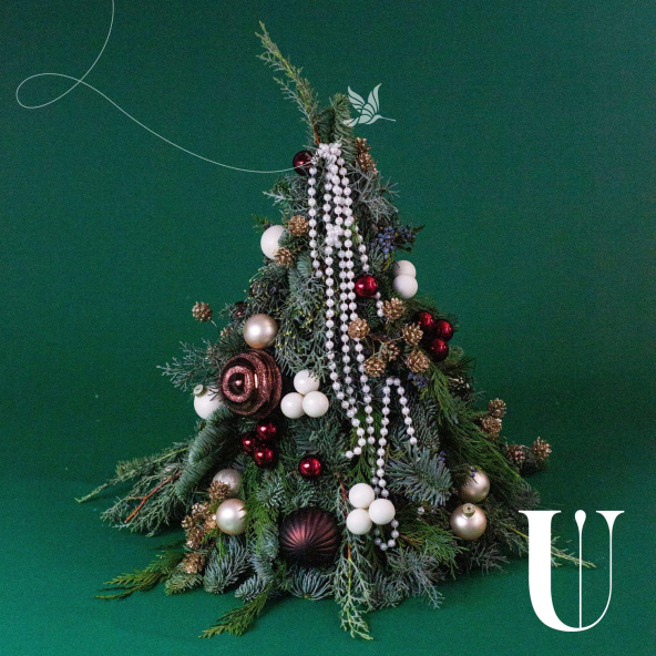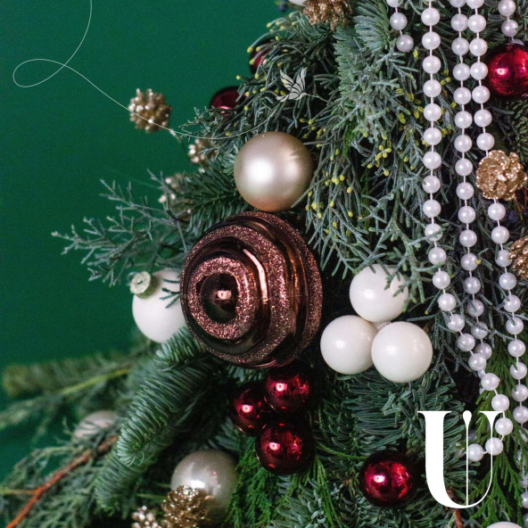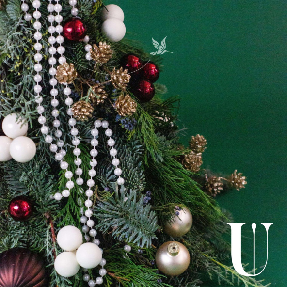 Новогодняя ёлочка из нобилиса, сосны, красных бус и красных шаров