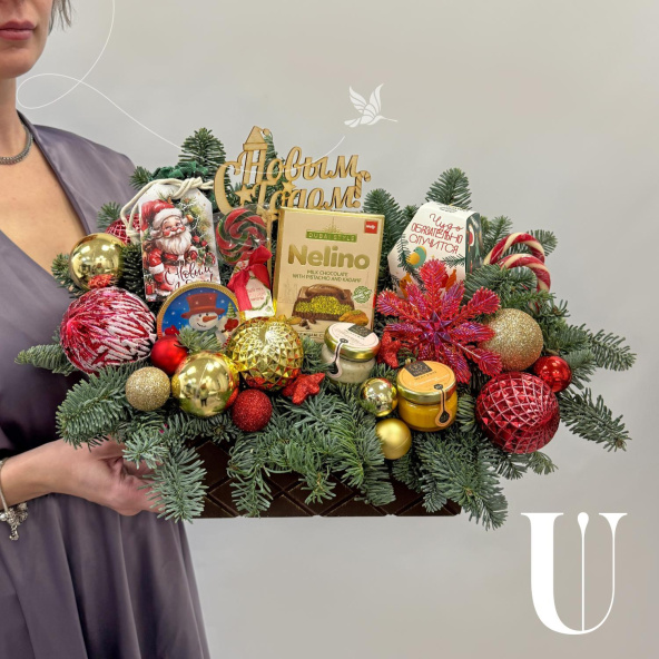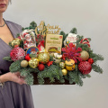 Подарочный набор в деревянном ящике с натуральным нобилисом и новогодним декором: