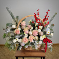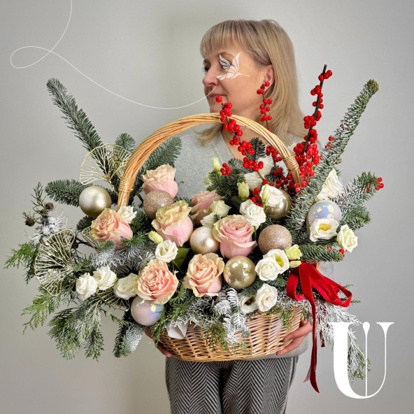 Новогодняя композиция из натурального лапника и декора в кашпо