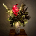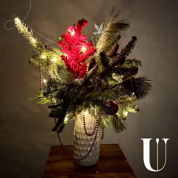 Новогодняя композиция из ветвей ели, шишек, гербер и роз