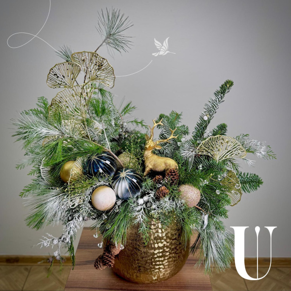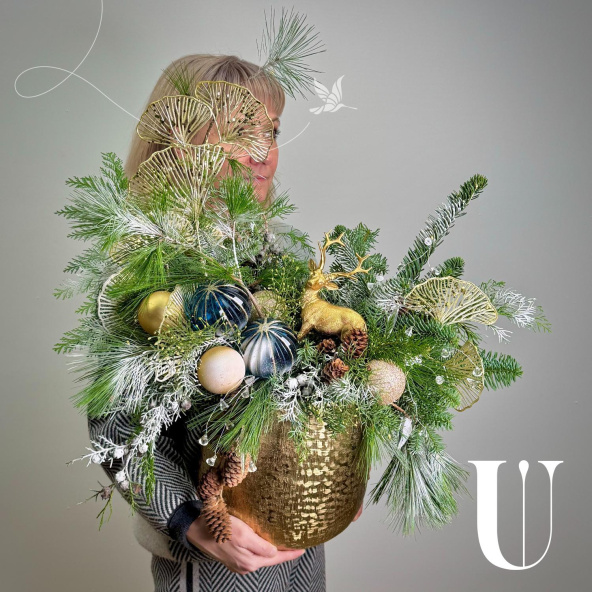 Шикарная новогодняя композиция в металлической вазе. Шикарный новогодний подарок. Сделана в единственном экземпляре.
