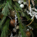 Состав: Нобилис, Сосна, Можжевельник, Аспарагус крашенный белый, Новогодний декор.
