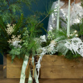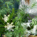 Состав: Нобилис, Сосна, Можжевельник, Свечи, Аспарагус крашенный белый, Новогодний декор.