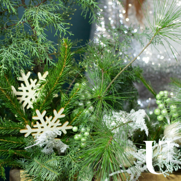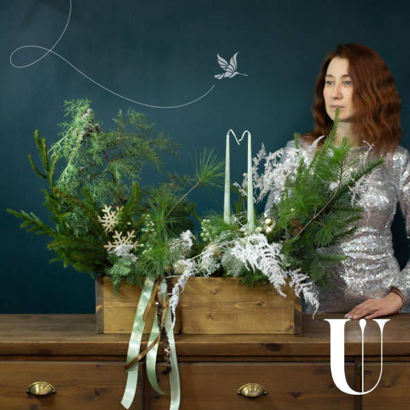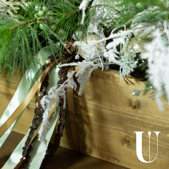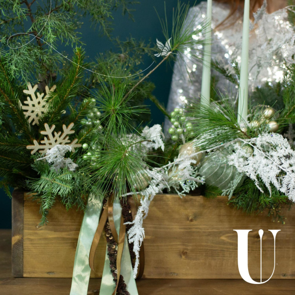 Интерьерная новогодняя композиция, которая наполняет пространство ощущением уюта, тишины и домашнего тепла. Натуральная хвоя, зимние текстуры и благородные декоративные акценты создают гармоничный и спокойный образ. Продуманная вытянутая форма делает её идеальным украшением для центра стола, консоли или подоконника. Композиция выглядит стильно и завершённо без дополнительного декора. Прекрасный выбор для тех, кто хочет создать в доме атмосферу настоящего зимнего праздника.