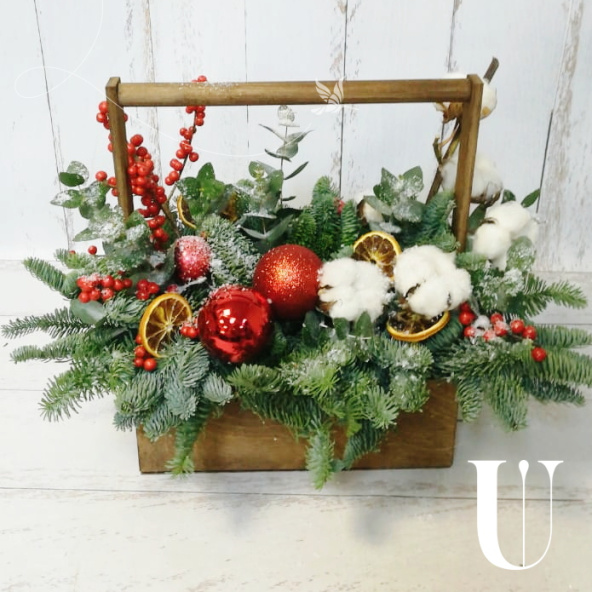 Новогодняя композиция в деревянном ящике