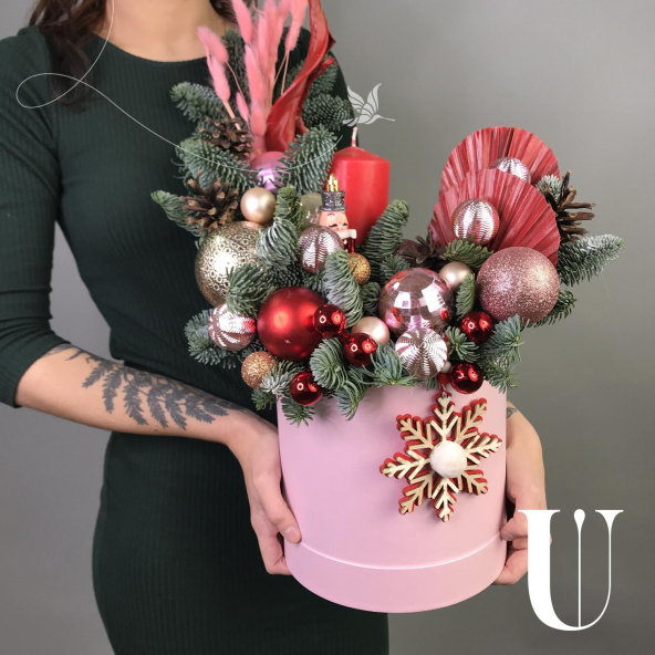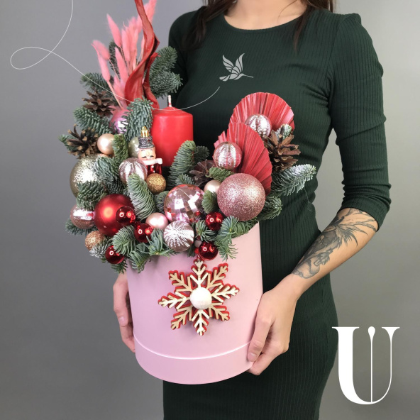 - Шляпная коробка розовая (выс. 20 см, диам. 20 см) - 1 шт