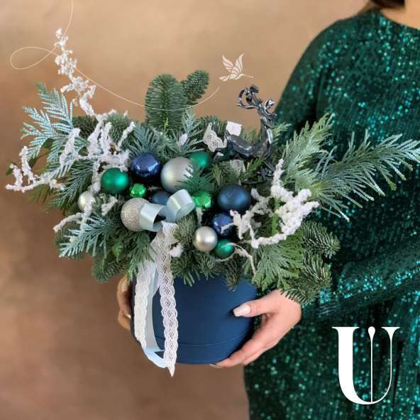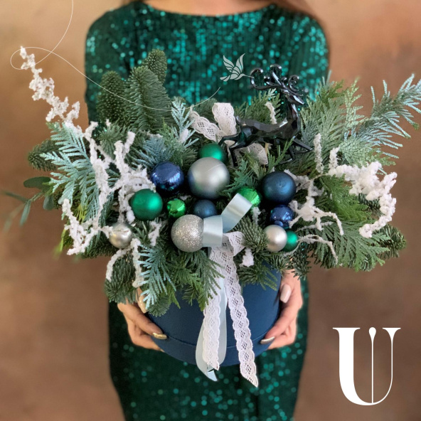 - Шляпная коробка, темно-синяя (выс. 17 см, диам. 14 см) - 1 шт