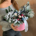 - Шляпная коробка бархатная, нежно-розовая (выс.16 см, диам.16 см) - 1 шт