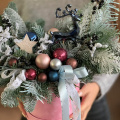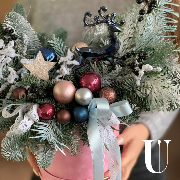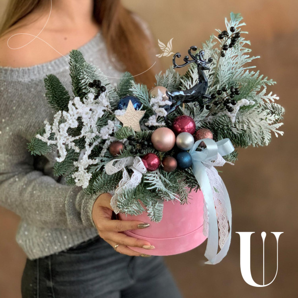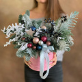 - Шляпная коробка бархатная, нежно-розовая (выс.16 см, диам.16 см) - 1 шт