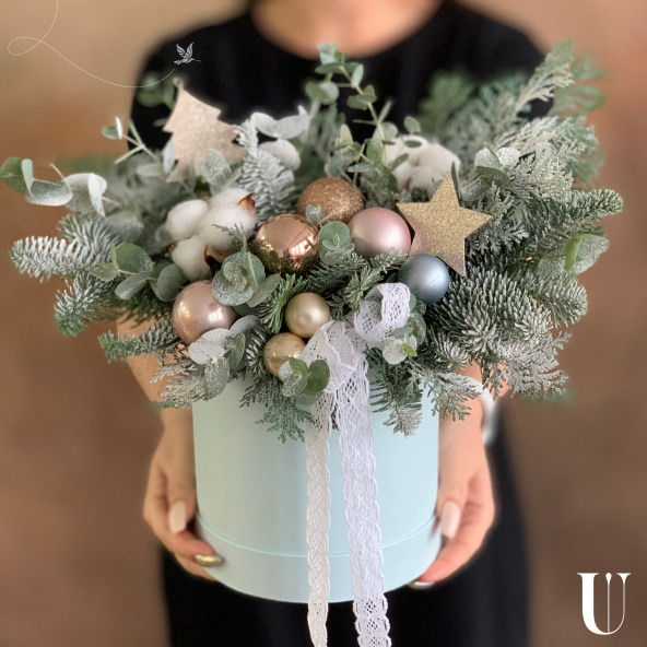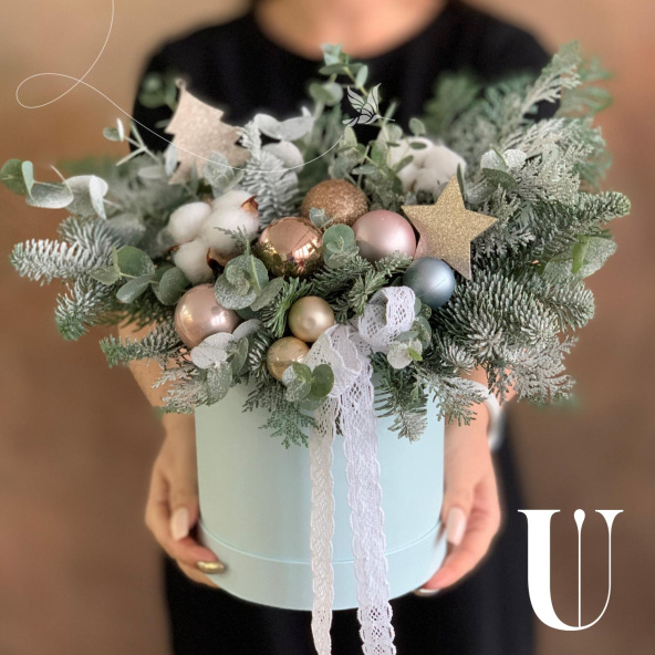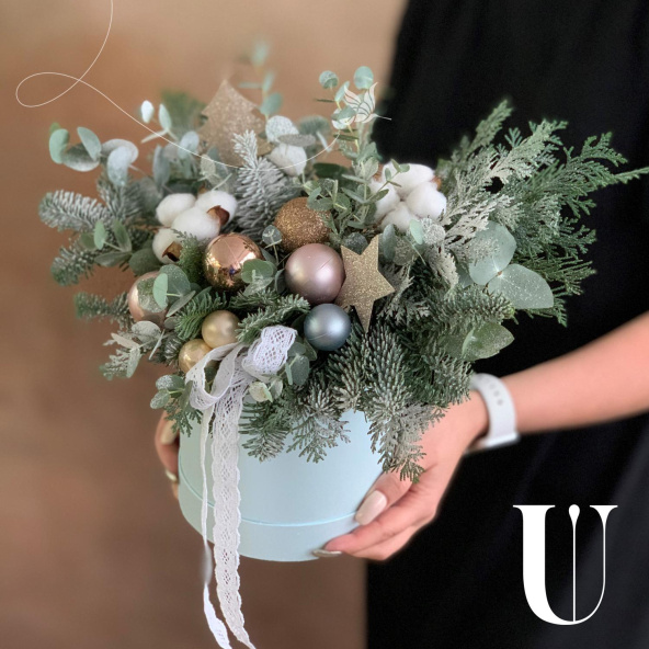 - Шляпная коробка, голубая (выс. 17 см, диам. 14 см) - 1 шт