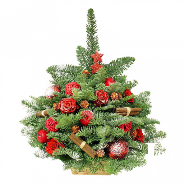 Розы Эльторо 10 шт., Корица, Ветви Ели, Декор, Корзинка, Оазис
