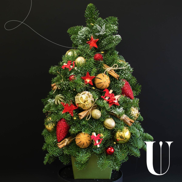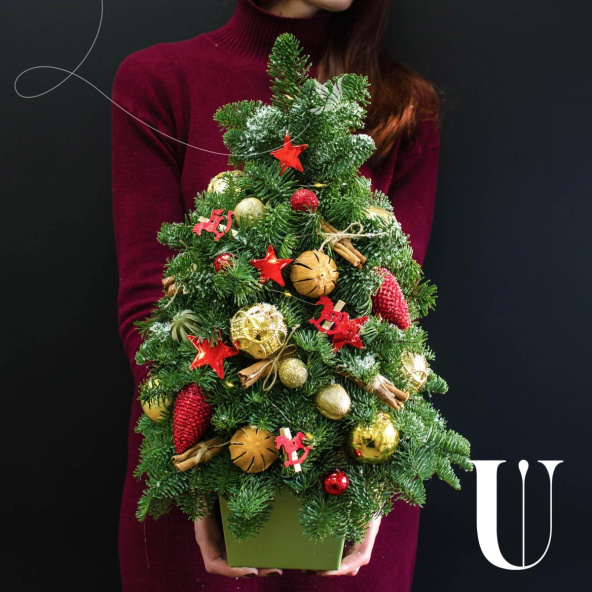 Елочка идеальной формы, собрала из датского живого лапника по веточке вручную нашими флористами. Почти не осыпается. Простоит месяц и более