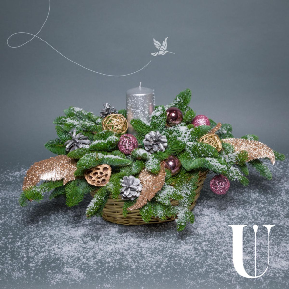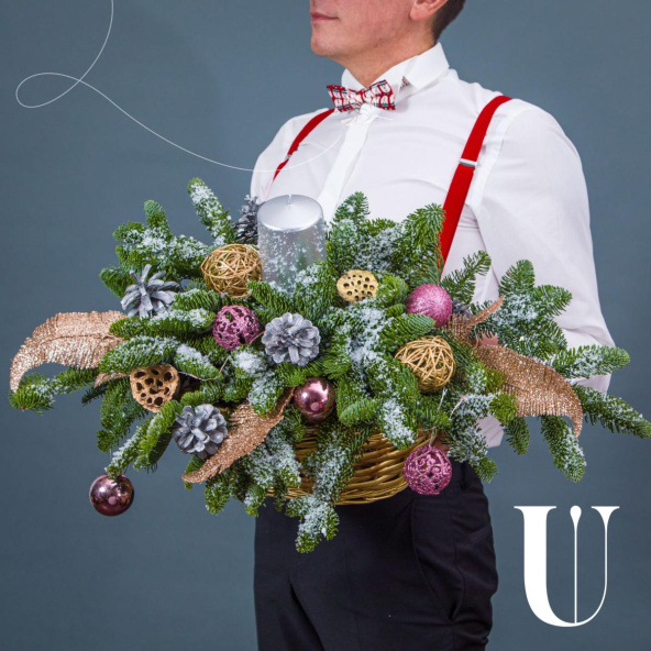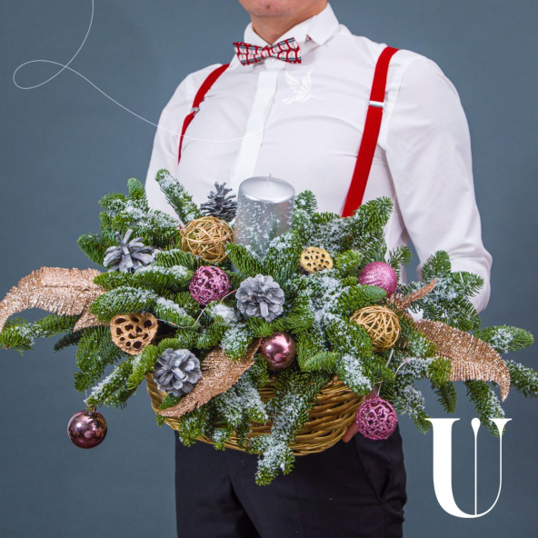 - Корзина круглая (выс. 13 см, выс. с ручкой 43 см, шир. 25 см) - 1 шт