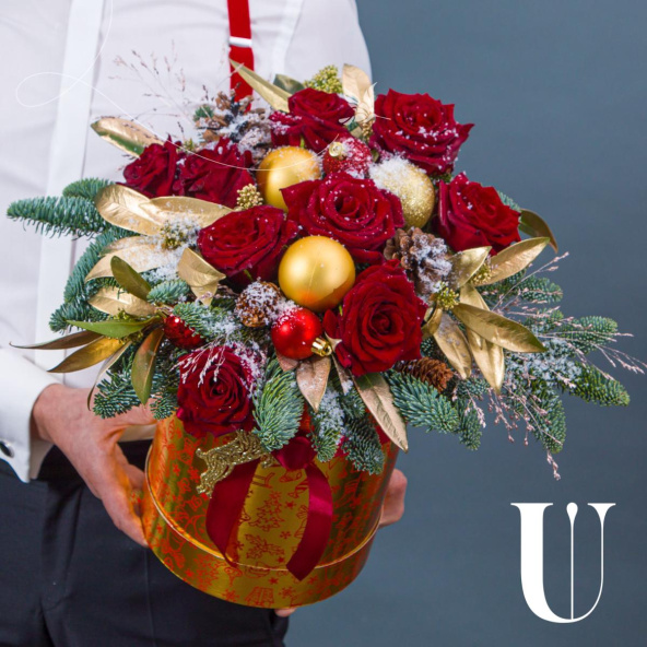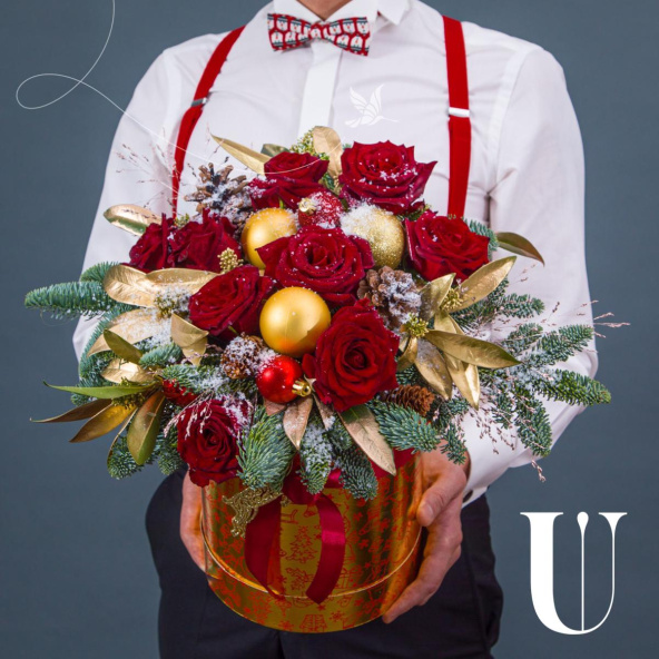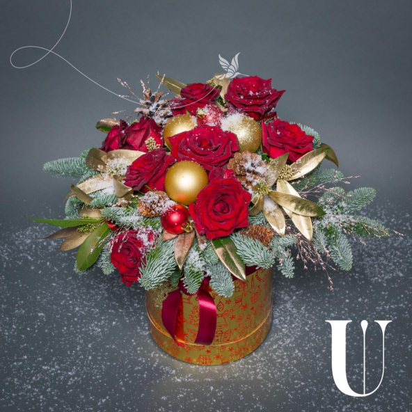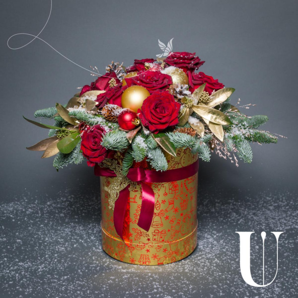 - Шляпная коробка золотая (выс. 25 см, диам. 20 см) - 1 шт