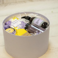 - Коробка круглая голубая, крышка розовая (выс. 15 см, диам. 25 см) - 1 шт