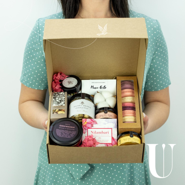 - Коробка квадрат, натуральный крафт (выс. 8 см, шир. 23 см) - 1 шт