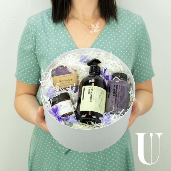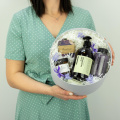 - Коробка круглая голубая, крышка розовая (выс. 15 см, диам. 25 см) - 1 шт