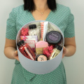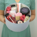 - Коробка круглая голубая, крышка розовая (выс. 15 см, диам. 25 см) - 1 шт