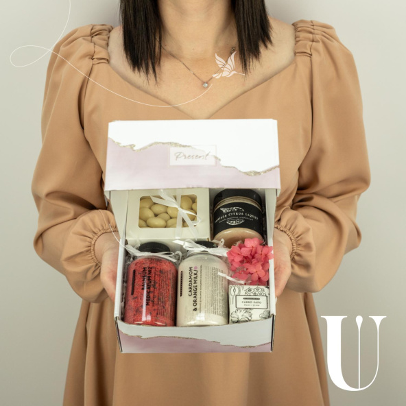 - Коробка квадрат, бело-розовая (выс. 8 см, шир. 19 см) - 1 шт