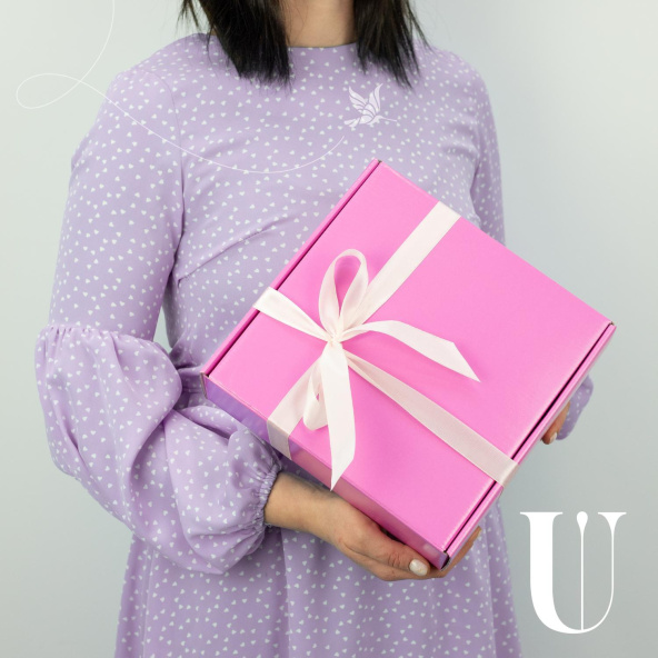 - Коробка квадрат, розовая (выс. 8 см, шир. 23 см) - 1 шт