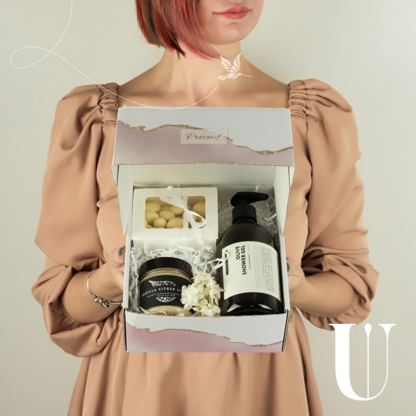 - Коробка квадрат, бело-розовая (выс. 8 см, шир. 19 см) - 1 шт