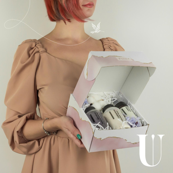 - Коробка квадрат, бело-розовая (выс. 8 см, шир. 19 см) - 1 шт