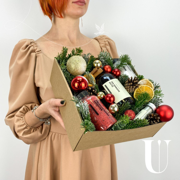 - Коробка квадрат, натуральный крафт (выс. 8 см, шир. 23 см) - 1 шт