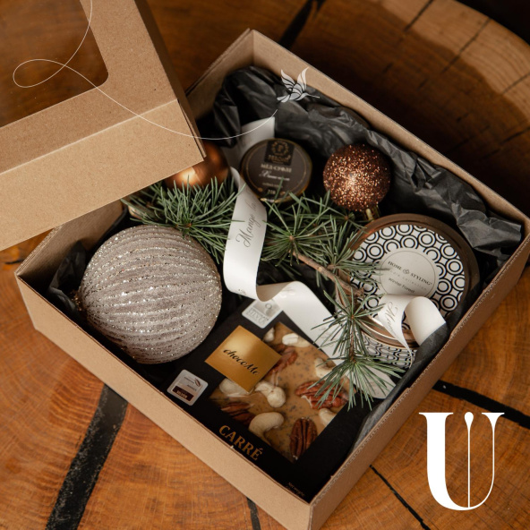 - Коробка квадрат, натуральный крафт (выс. 8 см, шир. 23 см) - 1 шт
