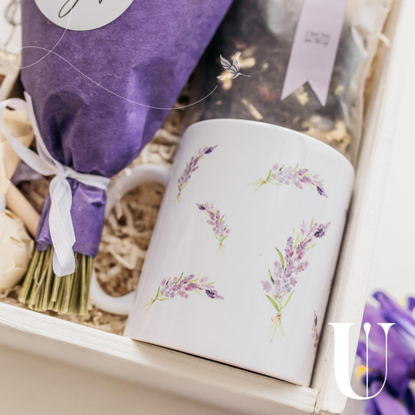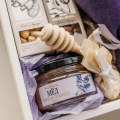 Букет ароматной лаванды не нужно ставить в воду, он будет радовать долгие годы. Ассорти орехов и мед, вкусное и полезное лакомство. Кружка и чай таёжный сбор для самых теплых и уютных посиделок. Пряник ручной работы, кокосовая конфета, деревянная ложка веретено - приятные детали, украшающие подарок. И конечно открытка для самых теплых пожеланий. Это готовый подарок, оформленный в оригинальном деревянном ящике. Создан восхищать!
