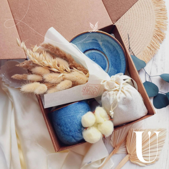 В составе подарочного бокса: кружка и блюдце из премиального фарфора, покрытые синей глазурью; ароматный чай в мешочке (50 гр); мини-букетик из сухоцветов; небольшая открытка. Каждый подарочный набор упакован в дополнительную транспортировочную коробку с наполнителем, поэтому вы можете не переживать, что он будет доставлен в целости и сохранности!