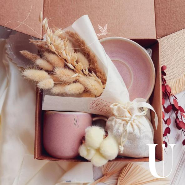 В составе подарочного бокса: кружка и блюдце из премиального фарфора, покрытые розовой глазурью; ароматный чай в мешочке (50 гр); мини-букетик из сухоцветов; небольшая открытка. Каждый подарочный набор упакован в дополнительную транспортировочную коробку с наполнителем, поэтому вы можете не переживать, что он будет доставлен в целости и сохранности!