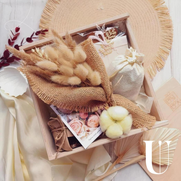 Подарочный набор "С Твоим Днем!" - идеальный вариант подарка для любимой девушки, жены, подруги, дочери, сестры, мамы, бабушки, коллеги или сотрудницы на работе. Такой душевный и оригинальный подарок ручной работы в стильной деревянной коробке, перевязанный лентой и украшенный сухоцветами точно не оставит равнодушным вашего близкого человека!