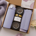 Подарочный набор из женского шарфа, термоса, подсвечника, свечи, арома саше и открытки