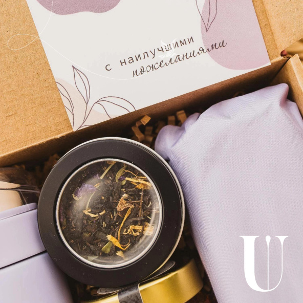 Подарочный набор из шарфа, двух видов чая, варенья и открытки