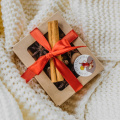 Подарочный набор из соленого миндаля, плитки шоколада, кофе в дрип-пакетах и октрытки