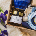 Подарочный набор из букетика крымской лаванды, баночки меда, ложки-веретено, ассорти орехов в шоколаде, листового чая и открытки