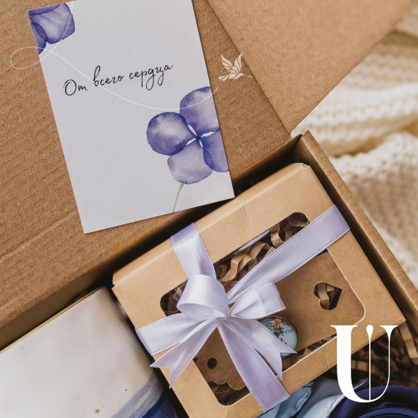 Подарочный набор из шарфа, двух видов чая, варенья и открытки
