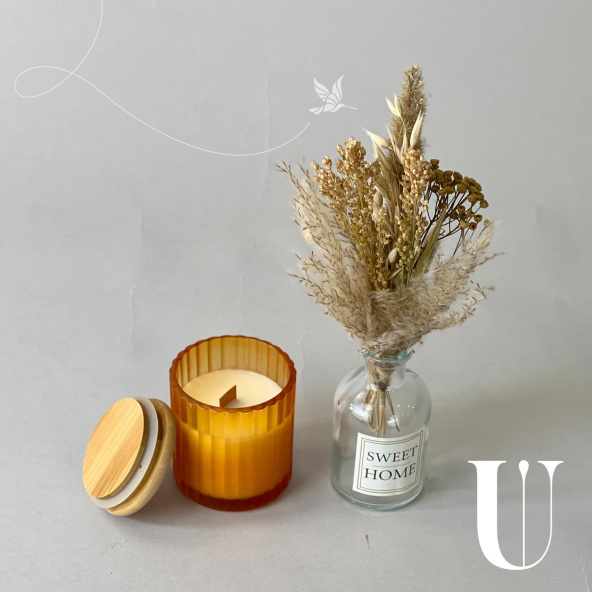 - Собранный со вкусом небольшой букетик сухоцветов . В комплекте к букету идет стеклянный бутылёк с надписью "Sweet Home", который придаст вашему интерьеру изящный и стильный вид.