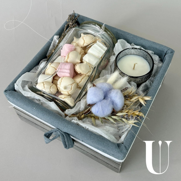 Изысканный подарочный набор в голубых оттенках. Подарочный набор «Лариньо» — это идеальный подарок для тех, кто ценит уют и красоту.
