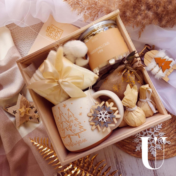 Подарочный набор "Счастливого Нового года" - идеальный вариант подарка на новый Год и Рождество для любимой девушки, жены, подруги, дочери, сестры, мамы, бабушки, коллеги или сотрудницы на работе, учителя, преподавателя. Такой душевный и оригинальный подарок ручной работы в стильной деревянной коробке, перевязанный лентой, точно не оставит равнодушным вашего близкого человека!