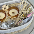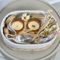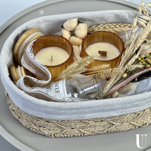 Подарочный набор «Монфорте» с ароматическими свечами и сухоцветами в интерьерной корзинке.