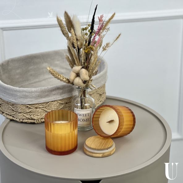 - Ароматические свечи ручной работы из натурального соевого и кокосового воска. Свеча выполнена в небольшом стеклянном подсвечнике с крышкой из пробкового материала. Объем свечей 2 по 140 мл;