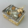 - Плетеная корзина ручной работы с тканевой отделкой. Плетеная корзина станет успешным дополнением к интерьеру и послужит для хранения мелочей и организации пространства в доме. Размер корзины: 22см*16см*10см.